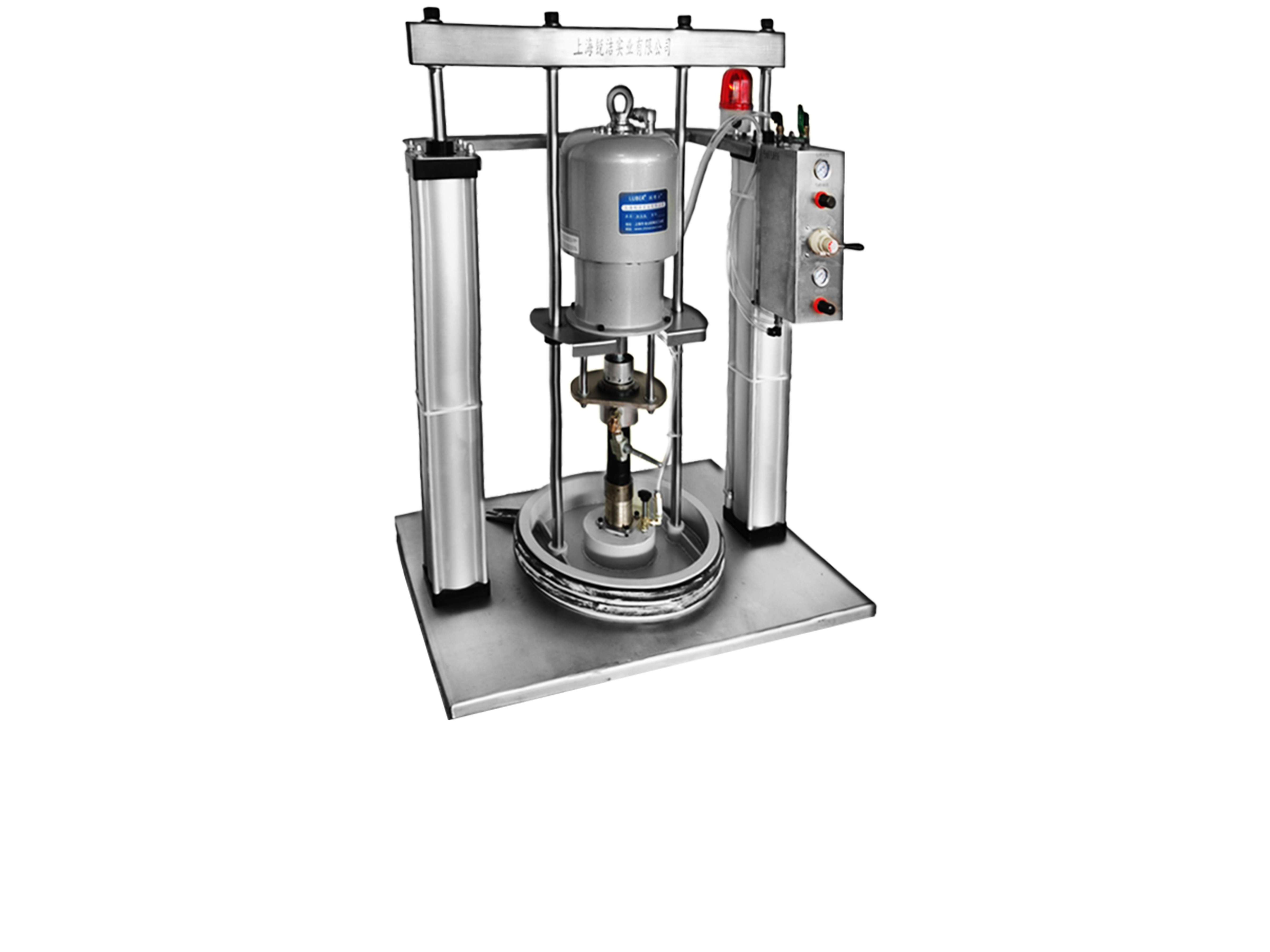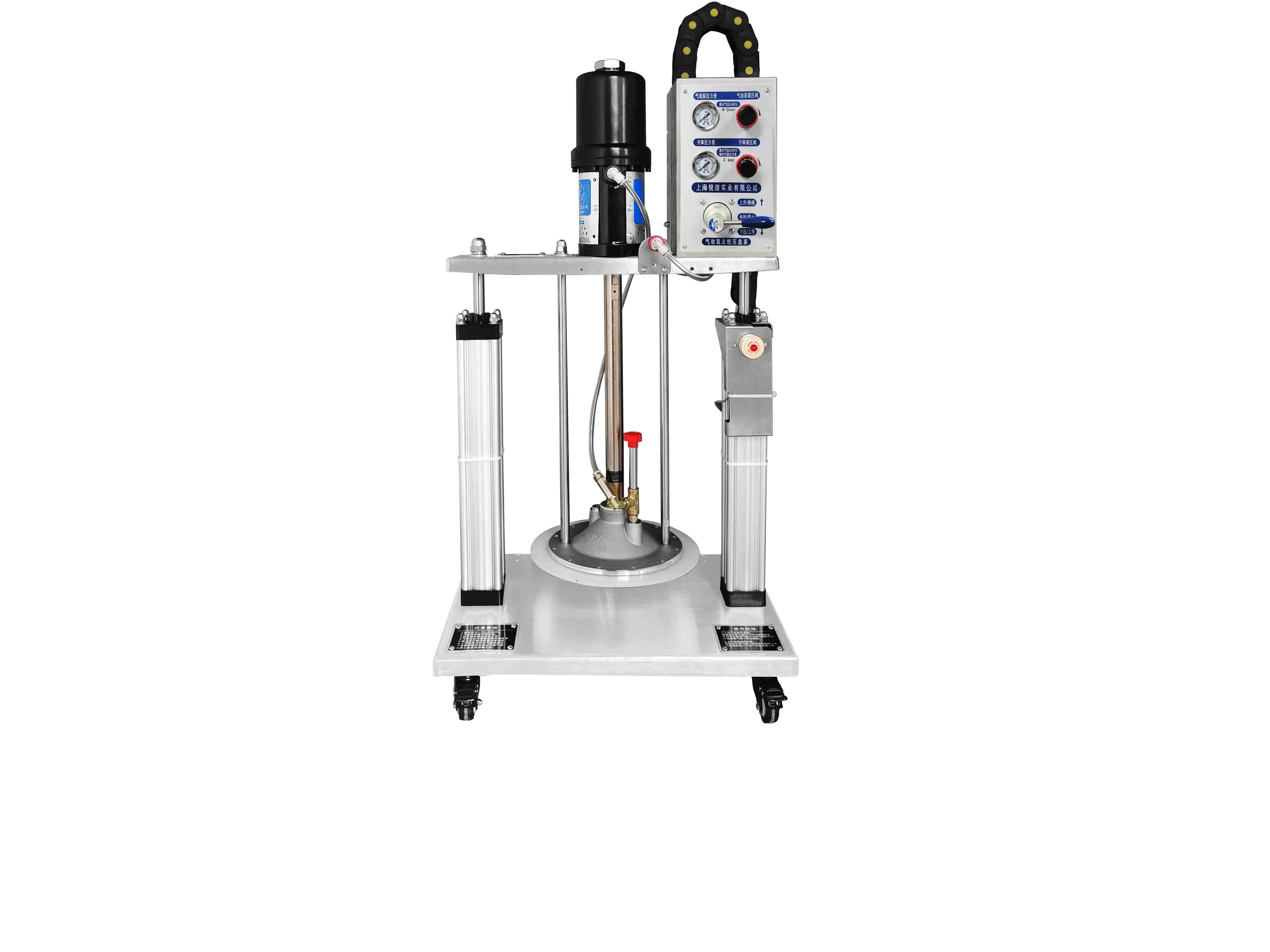 雙立柱黃油機是以壓縮空氣作動力,利用柱塞往復運動,從而輸出壓力潤滑油脂的一種裝置。配置有預施壓裝...