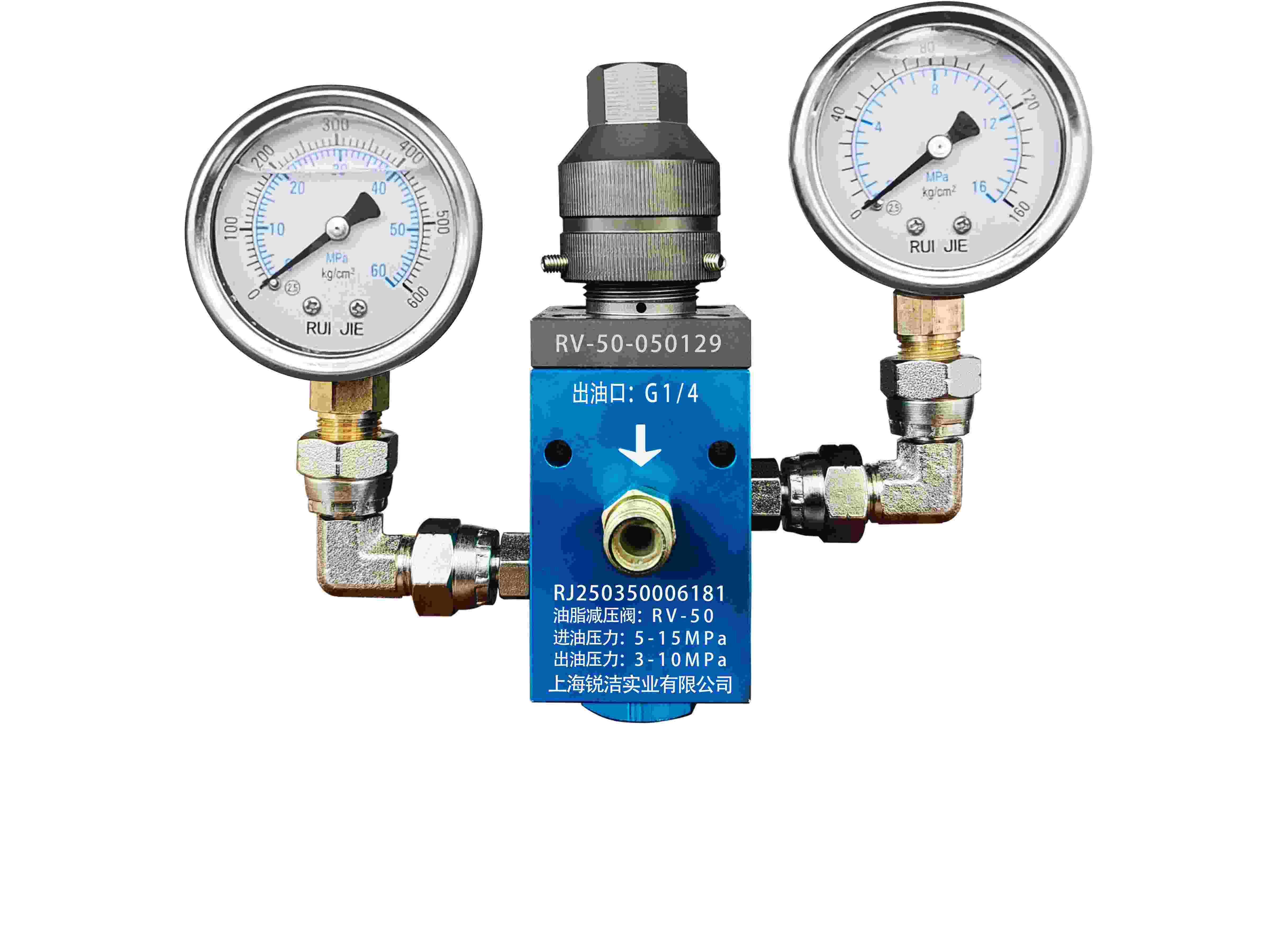 減壓閥可以將柱塞泵輸送的高壓油脂(10-40Mpa)減壓到定量閥點膠閥或者其它設備額定耐壓范圍內(8-150kg),并消除部分脈沖從而保護定量閥點膠閥或者其它設備,延長使用壽命。