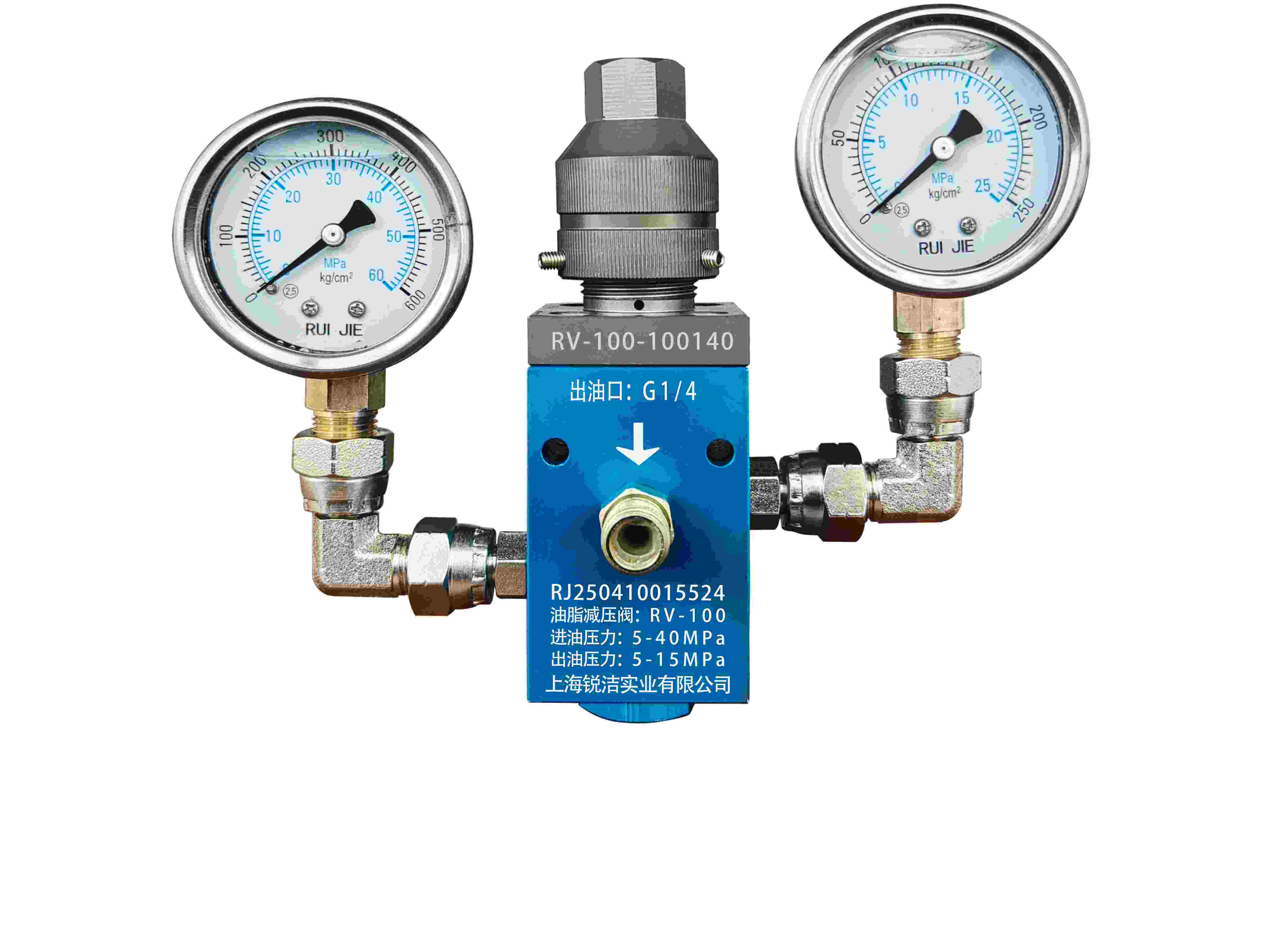 減壓閥可以將柱塞泵輸送的高壓油脂(10-40Mpa)減壓到定量閥點膠閥或者其它設備額定耐壓范圍內(8-150kg),并消除部分脈沖從而保護定量閥點膠閥或者其它設備,延長使用壽命。